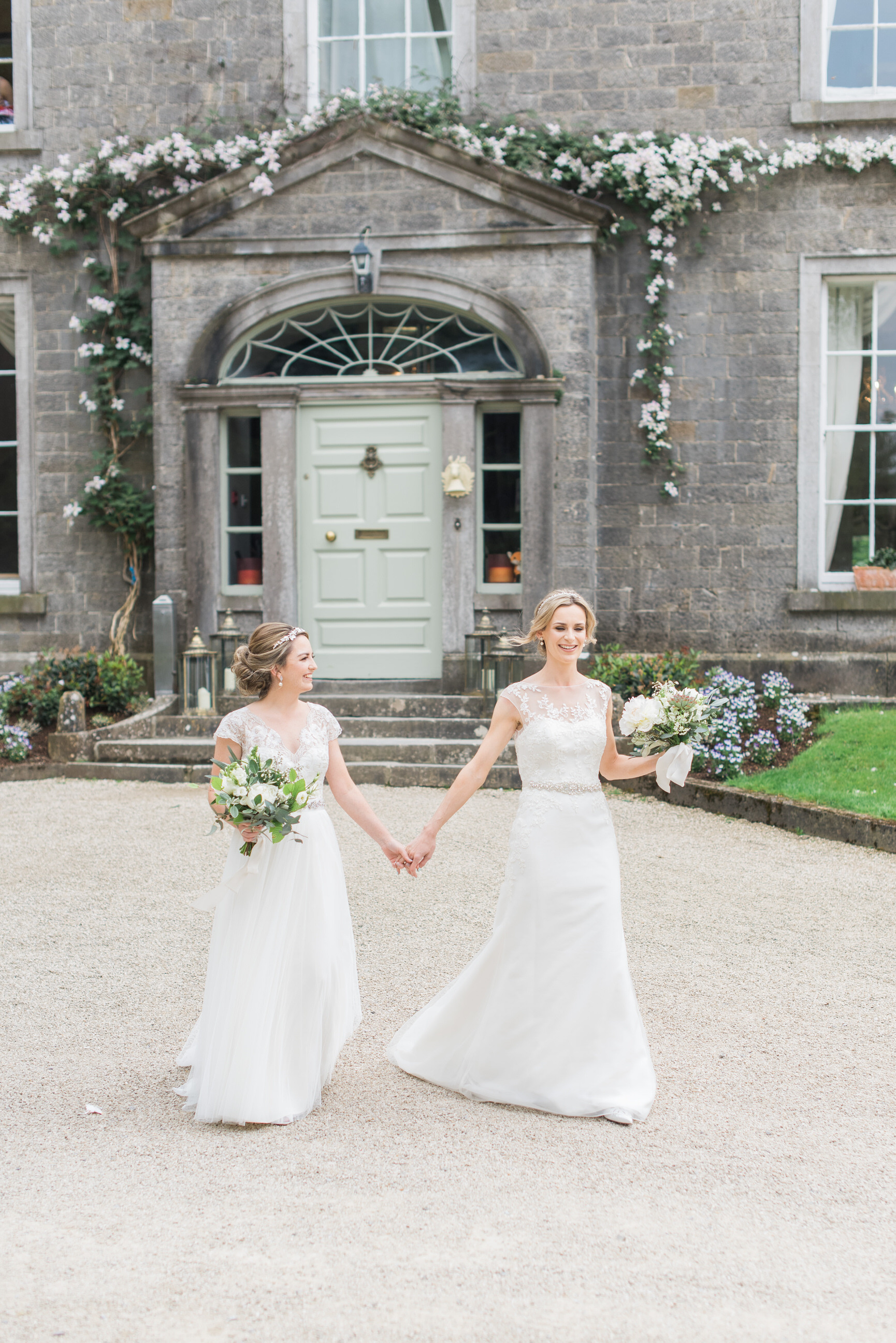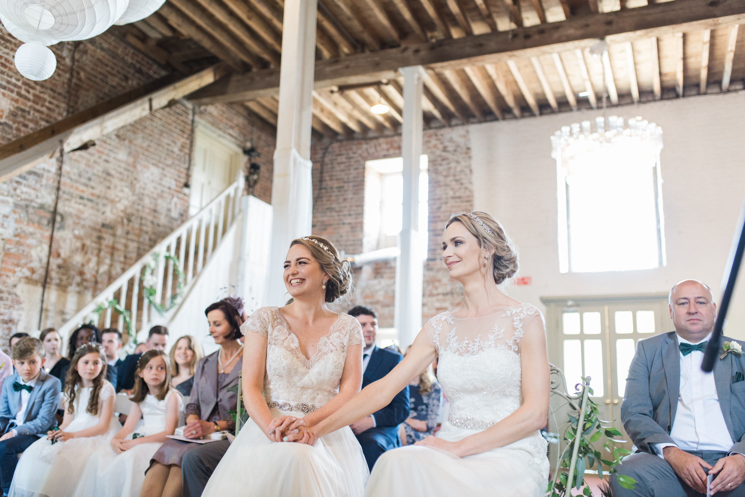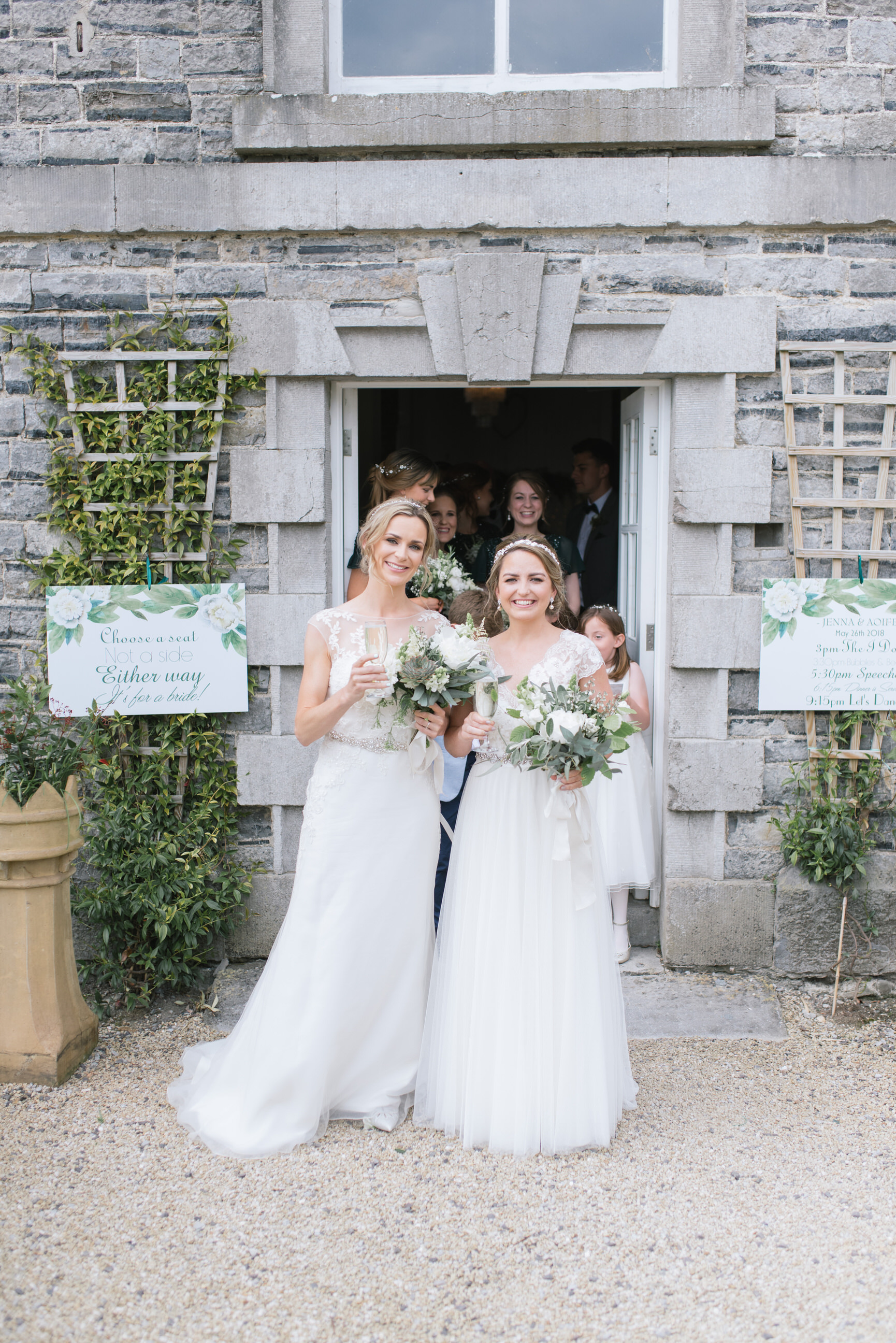 I met Jenna & Aoife last year when we shot our pre-wedding shoot and instantly i loved them. Proud of each other and madly in love. Both teachers living in the UK who met at the Gaeltacht. Both have amazing taste, obviously, since they hired me, but seriously, twi of the nicest, genuine people I’ve worked with. They decided on the Millhouse to celebrate with family and friends, as people know I got married here myself in 2015 so I know all the usual locations for photos. They opted for ‘First Look’ which is what it seems, seeing each other and getting photos done before the ceremony, so they have more time to PARTAYYY later with friends. They got married on site with a beautiful humanist ceremony.